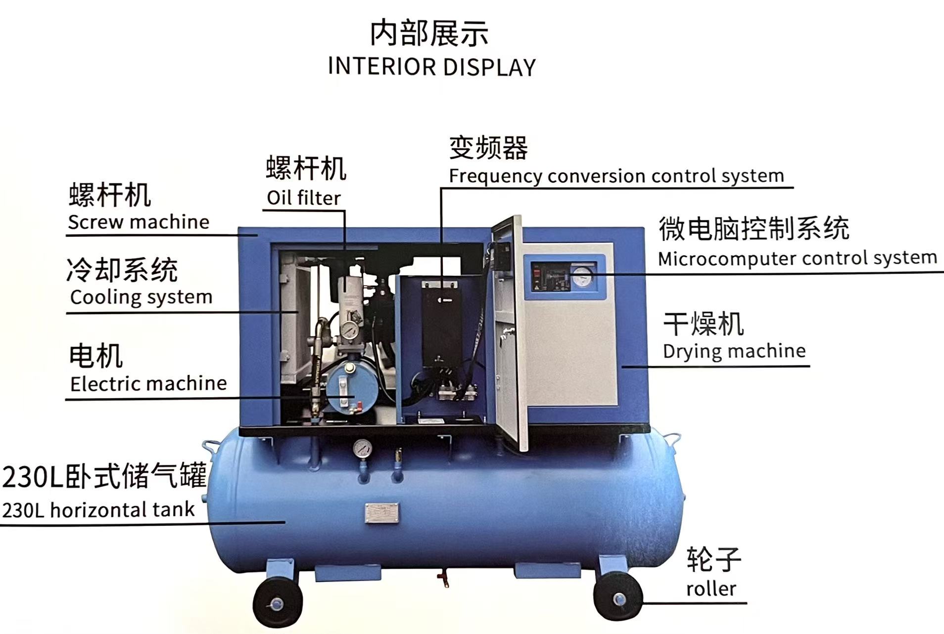 Unlike traditional air compressor systems that require separate components and complicated assembly, Quanwei’s 4-in-1 integrated model is a game-changer in terms of convenience and integration. It combines all the essential components you need into a single, compact unit—no more dealing with multiple devices, tangled pipelines, or the hassle of coordinating different equipment. This all-in-one design is not just a matter of convenience; it’s a strategic choice to help your business save time, reduce costs, and focus on what truly matters: productive, uninterrupted work.